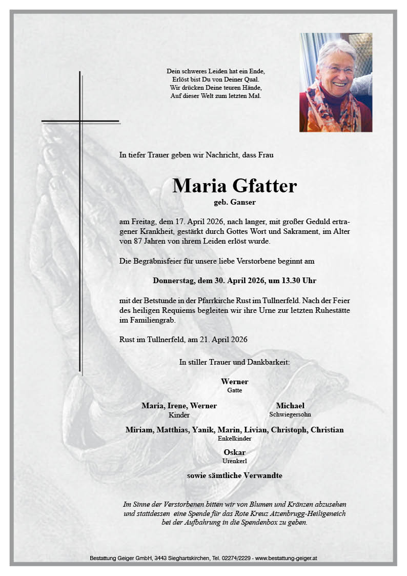 ( Unten folgend findet ihr die Parte mit den Informationen zur Verabschiedung bzw. Beisetung. )